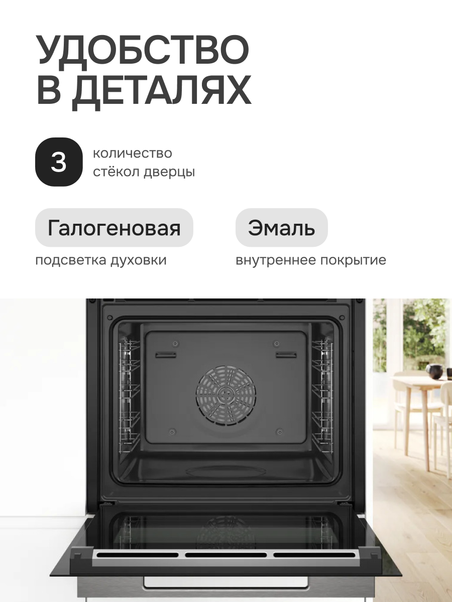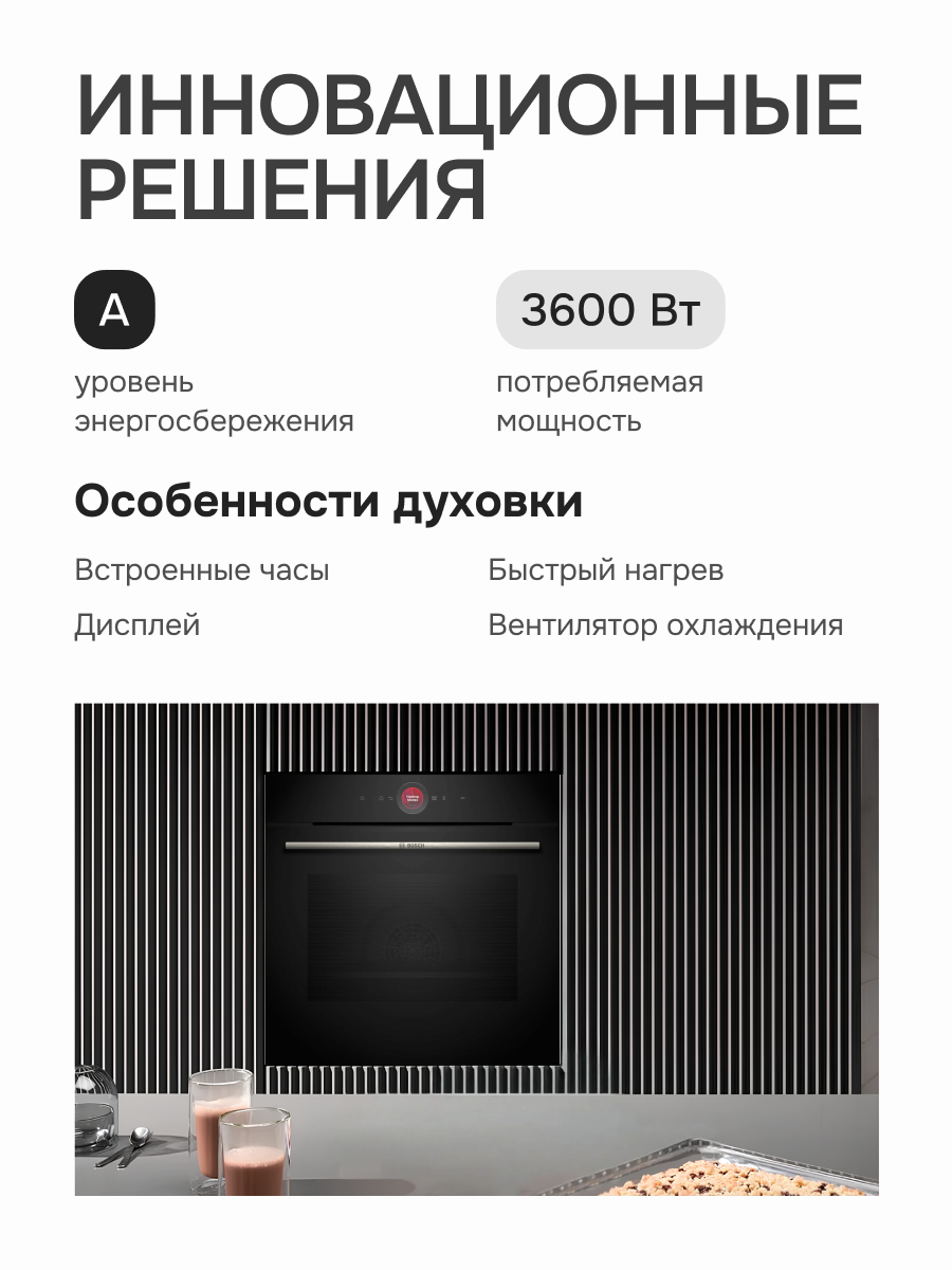 Этот духовой шкаф Bosch разработан с использованием передовых технологий, чтобы обеспечить равномерное и эффективное приготовление ваших любимых блюд. Интуитивно понятное управление делает процесс настройки простым и приятным, даже для начинающих кулинаров. Независимо от того, запекаете ли вы сочное мясо, готовите воздушную выпечку или овощи гриль, результат всегда будет превосходным.
