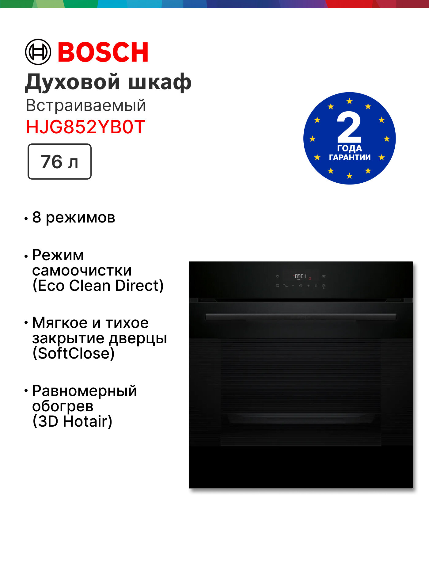 Инвестируйте в комфорт и качество с духовым шкафом Bosch HJG852YB0T. Готовьте с удовольствием, а Bosch позаботится об идеальном результате!