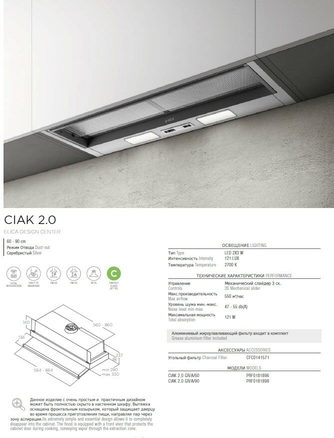 Приобретите вытяжку Elica Ciak 20 GRA 90 прямо сейчас и преобразите свою кухню в место, где всегда царит свежесть и чистота!