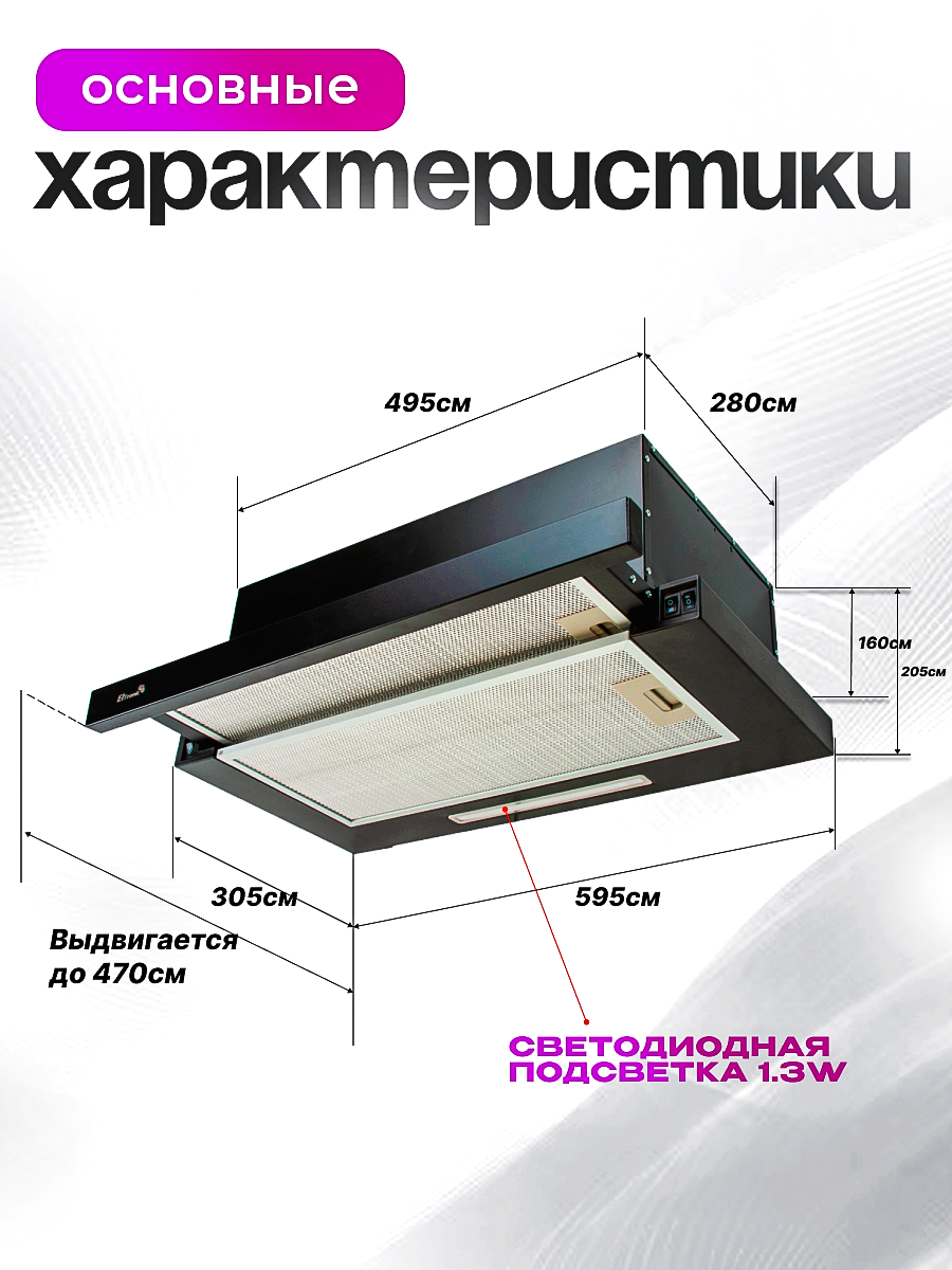 Черный цвет вытяжки придает ей элегантность и современность, позволяя ей легко вписаться в любой интерьер. Простота управления и надежность в эксплуатации делают ее идеальным выбором для каждой хозяйки. Ощутите разницу с вытяжкой Eltronic 77-13 – ваша кухня скажет вам спасибо!