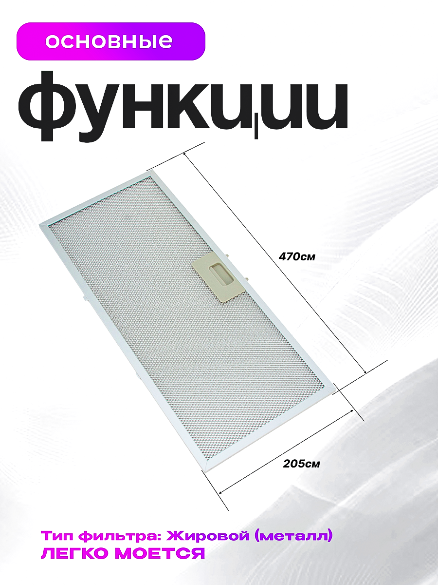 Белый цвет корпуса придает вытяжке элегантный и современный вид, который легко сочетается с различными стилями кухонной мебели. Управление интуитивно понятное, что делает использование вытяжки максимально комфортным.