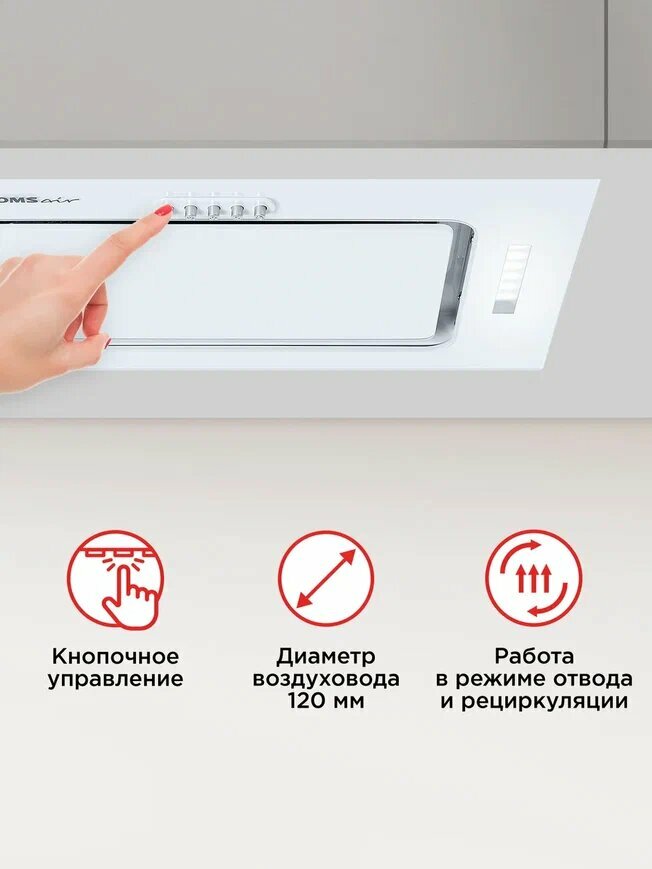 Благодаря продуманному дизайну, вытяжка легко интегрируется в любой кухонный интерьер, экономя пространство и не нарушая общую гармонию. Простота установки и удобство в использовании делают ее отличным выбором для тех, кто ценит комфорт и практичность.