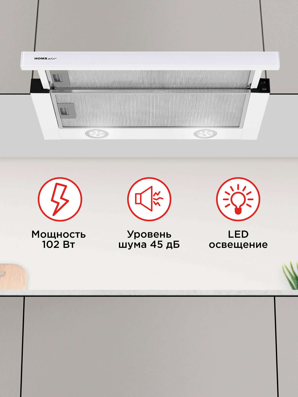 Ищете стильную и функциональную вытяжку для вашей кухни? Обратите внимание на кухонную вытяжку HOMSair FLAT 60 Glass в белом цвете. Эта телескопическая встраиваемая вытяжка шириной 60 см станет не только практичным решением для очистки воздуха от запахов и испарений, но и элегантным дополнением к интерьеру вашей кухни.