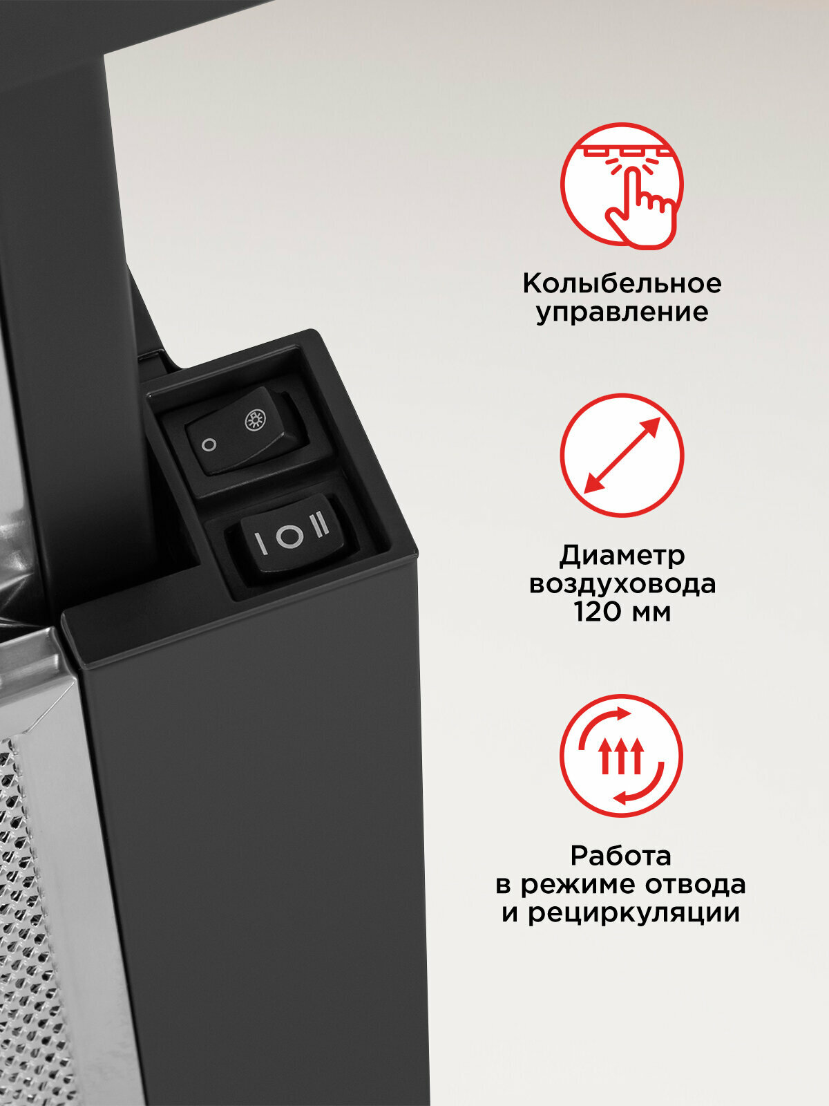Простота в использовании и управлении делает эту вытяжку идеальным выбором для любой хозяйки. Она легко выдвигается, обеспечивая оптимальный захват воздуха, а две скорости позволяют регулировать интенсивность очистки в зависимости от ваших потребностей.