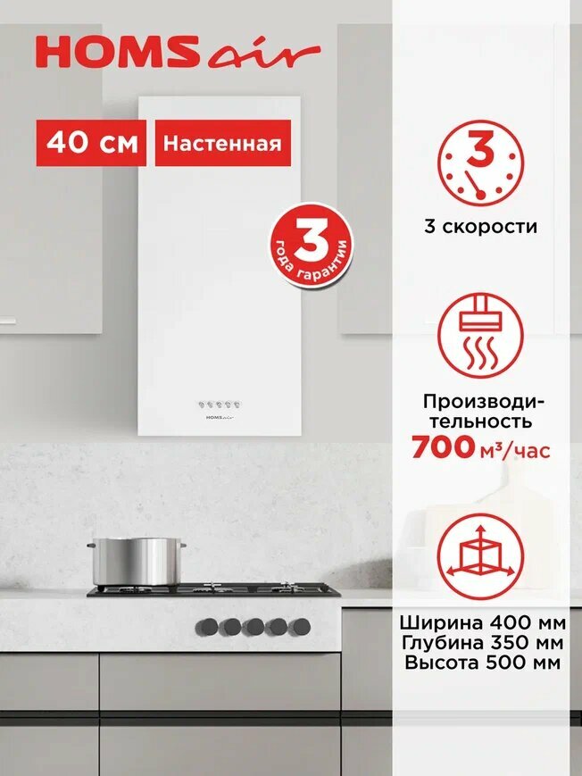 Закажите кухонную вытяжку Homsair Phlox Push 40 прямо сейчас и создайте комфортную атмосферу на своей кухне!