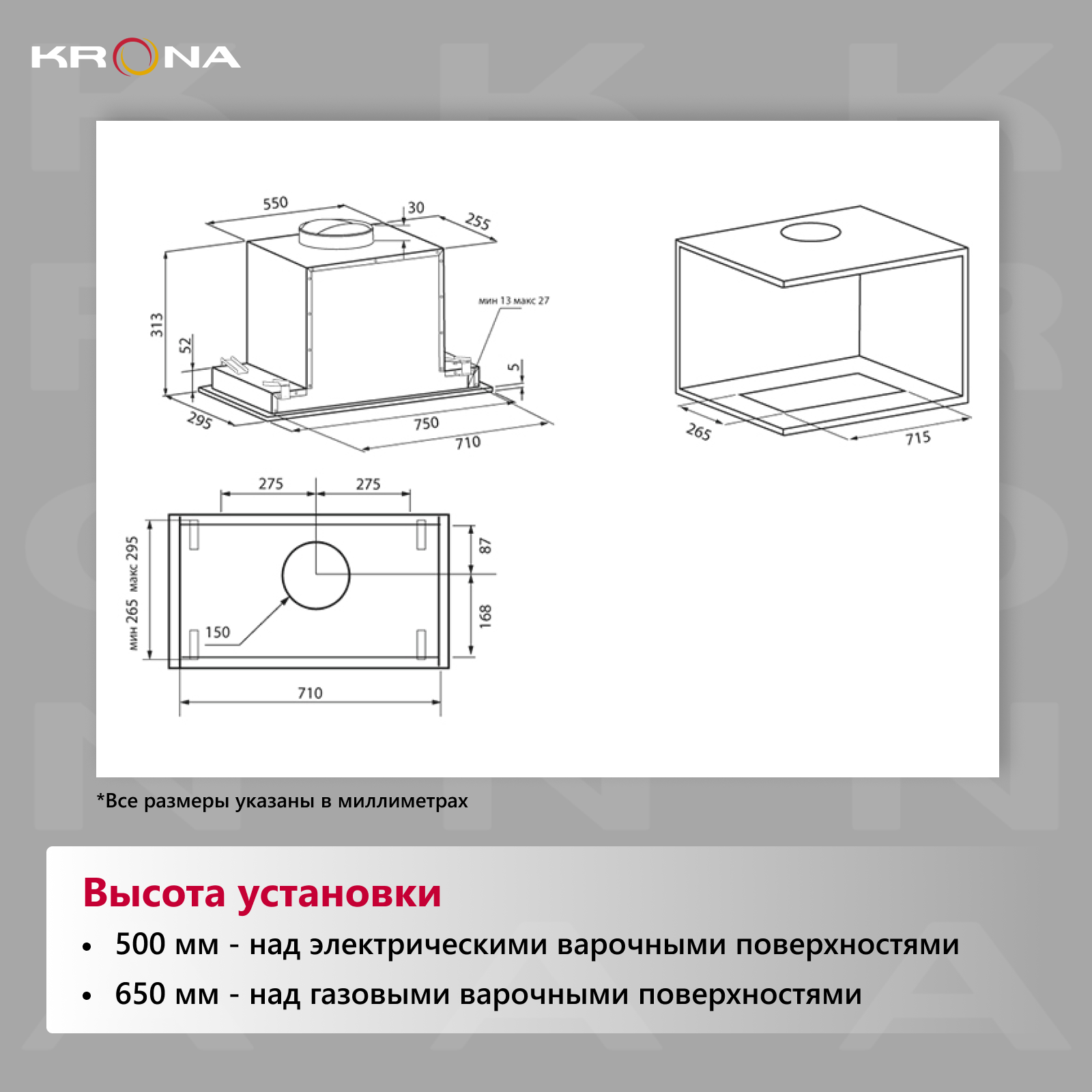 Сделайте правильный выбор для комфорта и уюта в вашем доме! Вытяжка Krona Selina – это современный дизайн и надежность в одном устройстве.