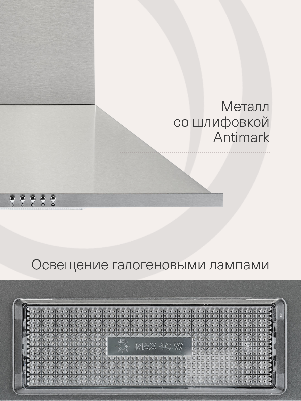 Корпус из нержавеющей стали не только выглядит привлекательно, но и гарантирует долговечность и устойчивость к внешним воздействиям. Гладкая поверхность легко очищается от загрязнений, что обеспечивает простоту в уходе и сохраняет безупречный вид вытяжки на долгие годы.