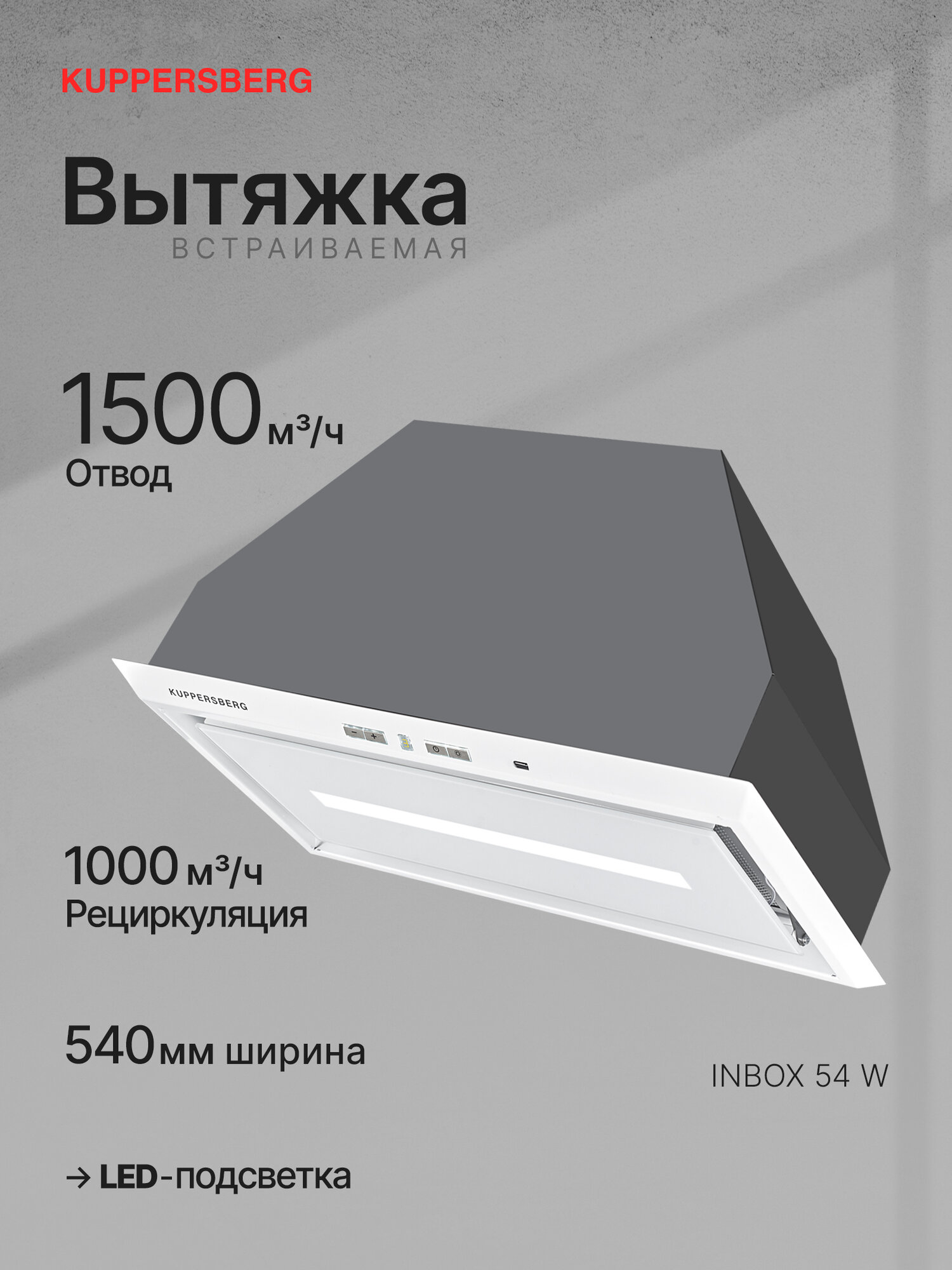 Ищете идеальное решение для поддержания чистоты и свежести воздуха на вашей кухне? Обратите внимание на встраиваемую кухонную вытяжку Kuppersberg Inbox 54 W (модификация 2025 года)! Эта модель разработана с учетом современных требований к функциональности, дизайну и удобству использования.