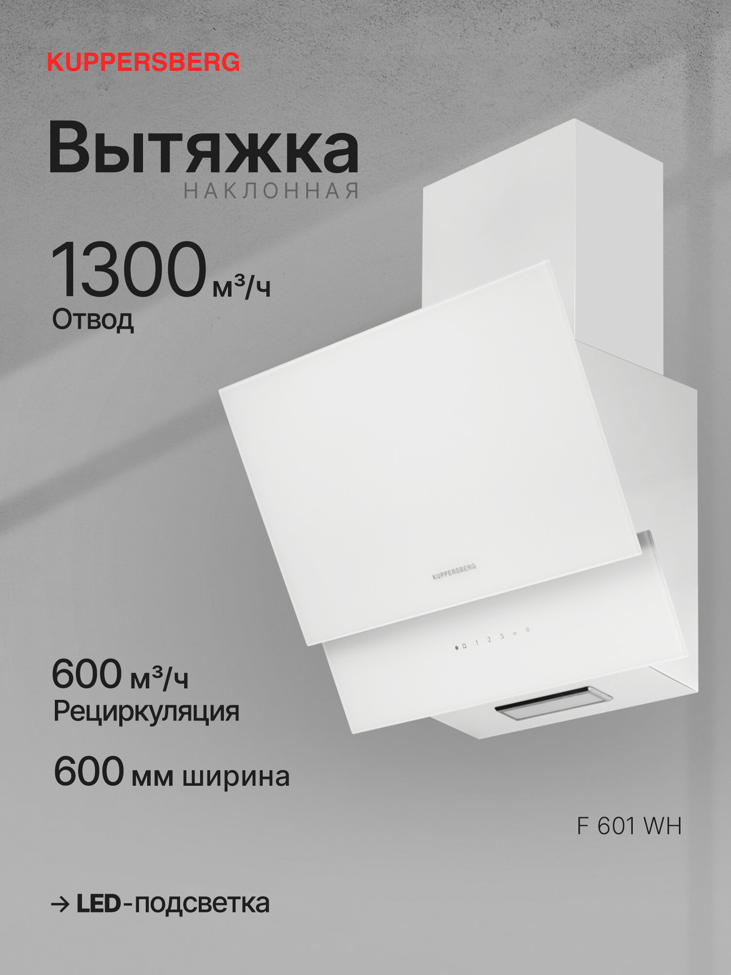 Ищете идеальное решение для поддержания чистоты и свежести воздуха на вашей кухне? Наклонная вытяжка Kuppersberg F 601 WH (модификация 2025 года) – это современное устройство, которое сочетает в себе высокую производительность и стильный дизайн. Она эффективно удаляет запахи, дым и испарения, возникающие во время приготовления пищи, создавая комфортную атмосферу для вас и ваших близких.
