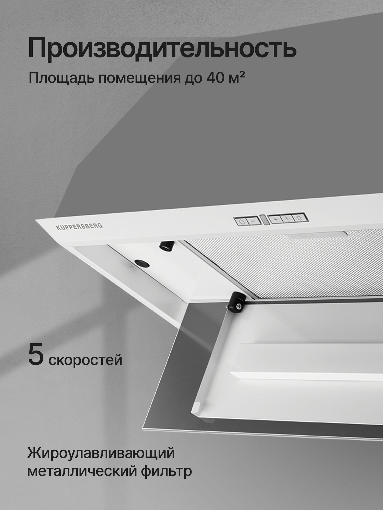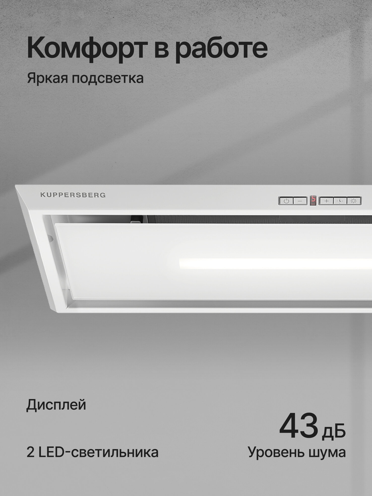 Kuppersberg Intro 70 White (модификация 2025 года) отличается надежностью и долговечностью. Продуманные технические решения гарантируют тихую и эффективную работу устройства, а простота в управлении делает его удобным в повседневном использовании. Эта вытяжка станет вашим надежным помощником в создании комфортной и чистой кухни.