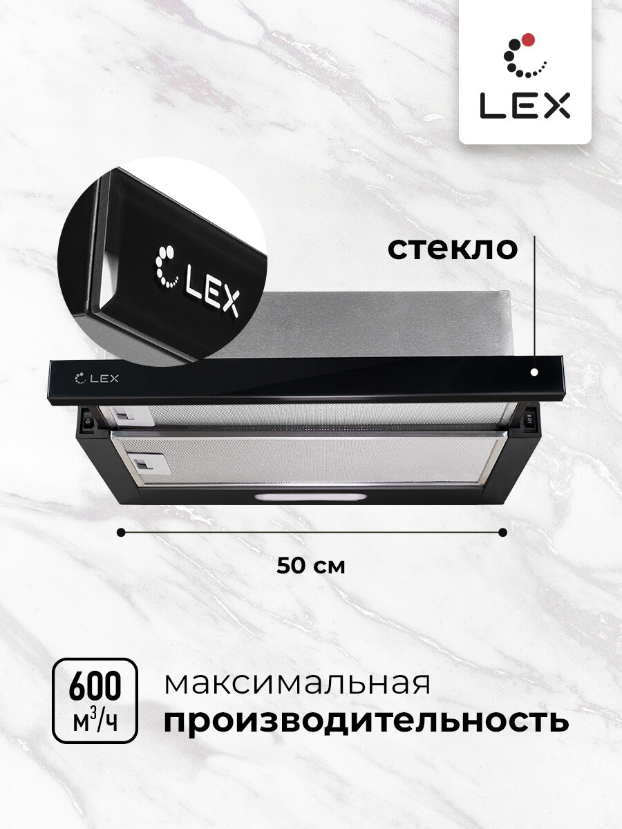 Закажите встраиваемую вытяжку LEX HONVER G 500 черного цвета прямо сейчас и забудьте о проблемах с запахами на кухне!