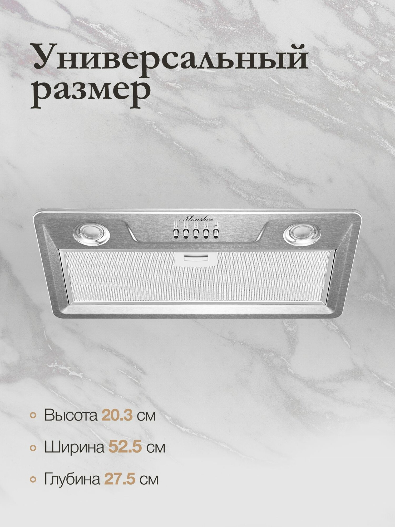 Выбирая встраиваемую вытяжку Monsher Inhit 60 Acier, вы получаете не только эффективное устройство для очистки воздуха, но и стильный элемент интерьера, который подчеркнет индивидуальность вашей кухни. Наслаждайтесь процессом приготовления любимых блюд, не беспокоясь о неприятных запахах!