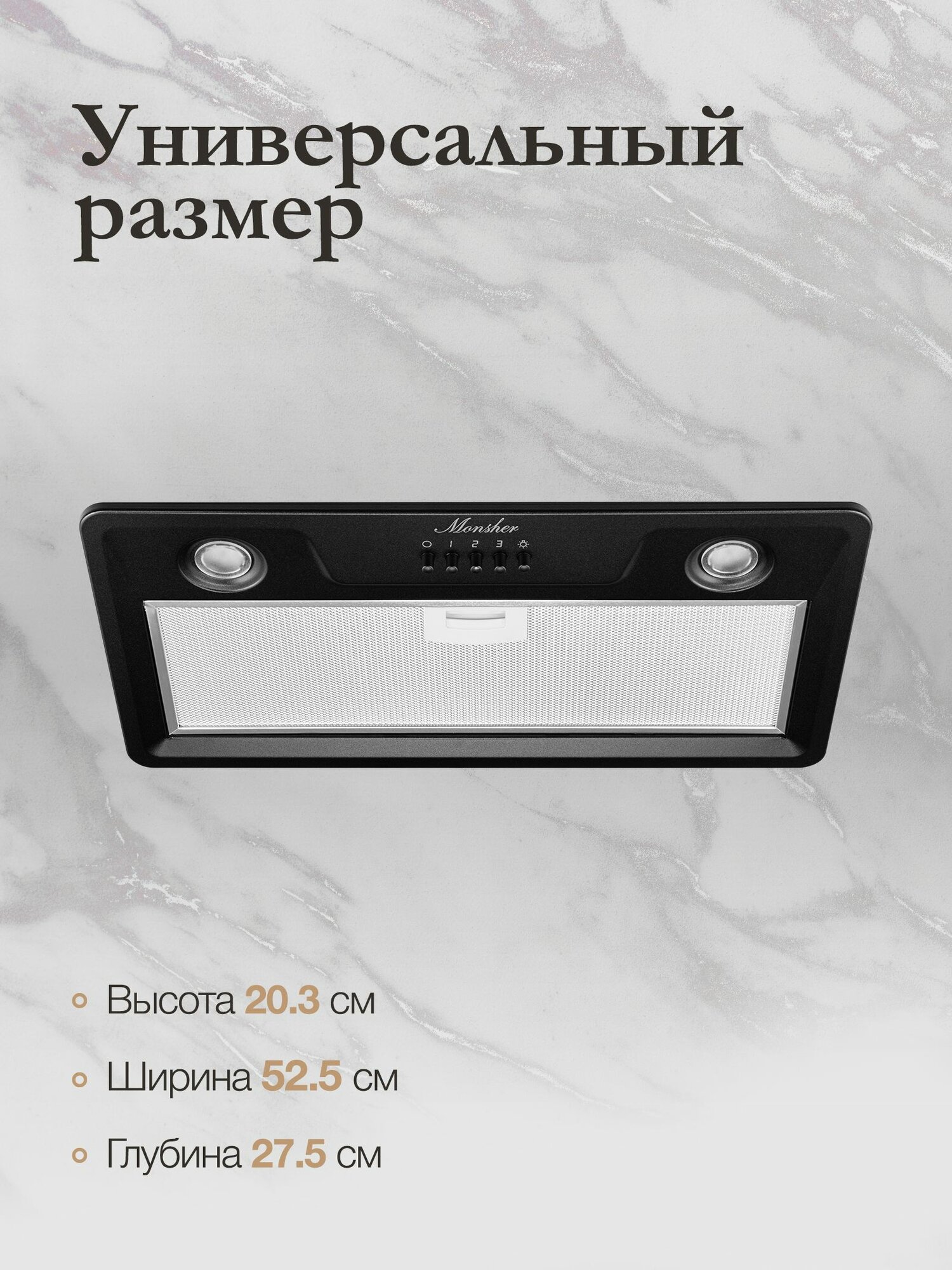 Представляем вашему вниманию встраиваемую вытяжку Monsher Inhit 60 Noir – идеальное сочетание функциональности, стиля и передовых технологий, которое преобразит вашу кухню. Этот элемент бытовой техники не только эффективно очистит воздух от неприятных запахов, жира и дыма, но и станет стильным акцентом в интерьере.