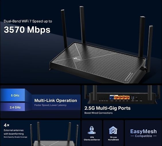 Ищете современное решение для бесперебойного и скоростного интернета в вашем доме или офисе? Представляем Wi-Fi роутер TP-Link Archer BE230 – ваш билет в мир безупречного онлайн-опыта! Этот роутер, поддерживающий новейший стандарт Wi-Fi 7, разработан для удовлетворения самых требовательных потребностей в скорости и стабильности соединения.